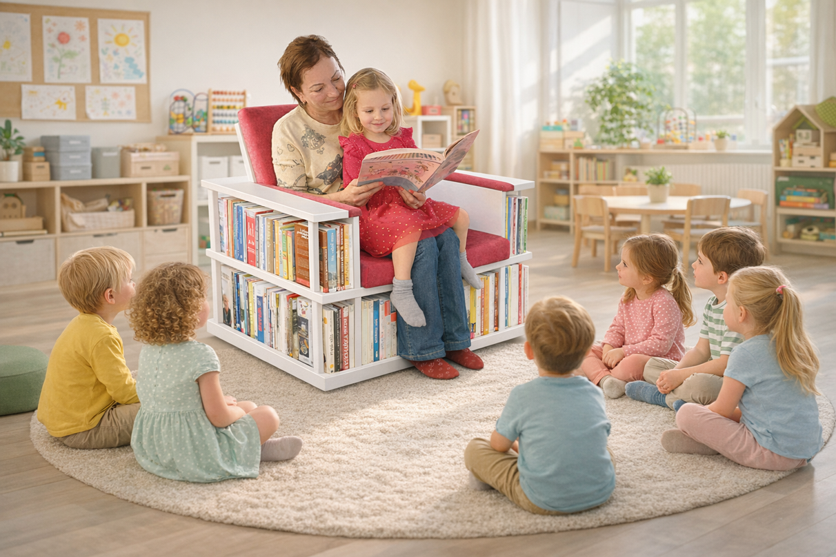 Children today do not naturally gravitate towards books. That is why it is so important for preschools to create conditions that lead them to reading instinctively. Kniholo transforms every corner of a playroom into an organized and inviting space where books are within reach and children reach for them gladly, without any pressure or persuasion. Simply place it in the classroom – and children will find their own way to books. It supports the development of early literacy and offers a foundation for both individual discovery and shared reading with the teacher. Thanks to its stable construction and certified safety, it is suitable for everyday use. Kniholo is not just a place for books. It helps children build a relationship with reading, develop independence, and above all, experience the joy of stories from an early age.